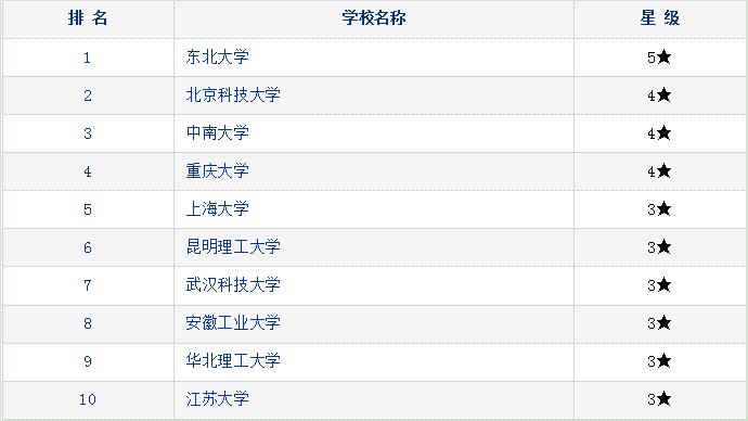 钢铁冶金研究生专业排名(3星以上)