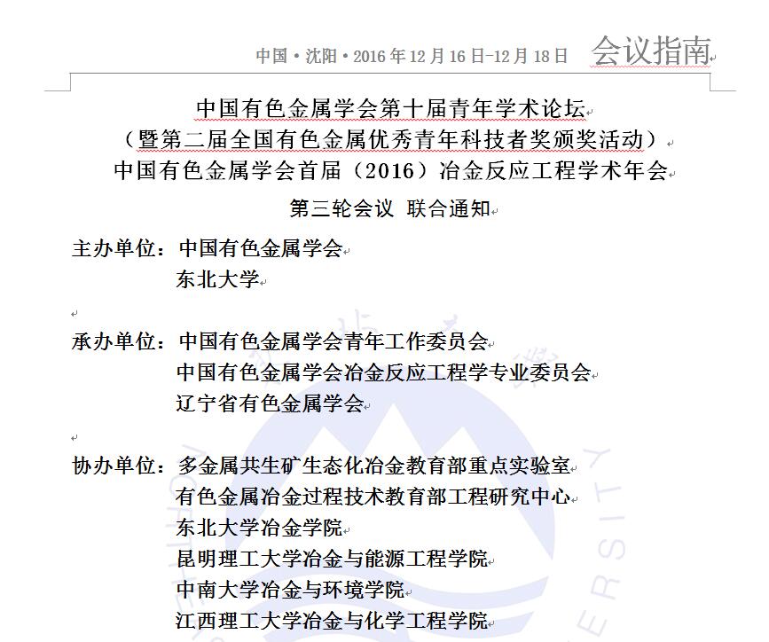 中国有色金属学会第十届青年论坛暨首届冶金反应工程学术年会