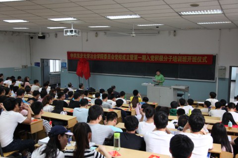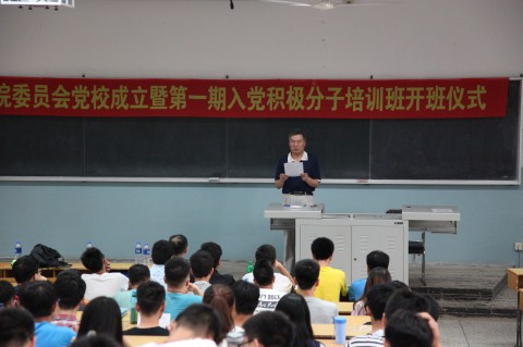 随后,杨东坪代表学院党委发表了讲话。他在讲话中指出,学院党委一直以来十分重视教职工和青年学生的全面发展,党校的成立旨在为积极要求入党的教职工和学生进行政治导航,为党员和基层党组织工作干部提供长期、系统进行深入学习的机会,为加强学院整体党员队伍建设提供坚强后盾和有效保障。他向参加党校培训的学员们提出了四点希望:积极学习党的基本知识,坚定信念;学习科学文化知识,适应时代发展要求;自觉遵守纪律,提高学习实效;不断深入加强党的建设理论研究,逐步成为马克思主义理论的继承者和创新者。