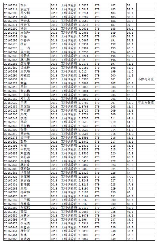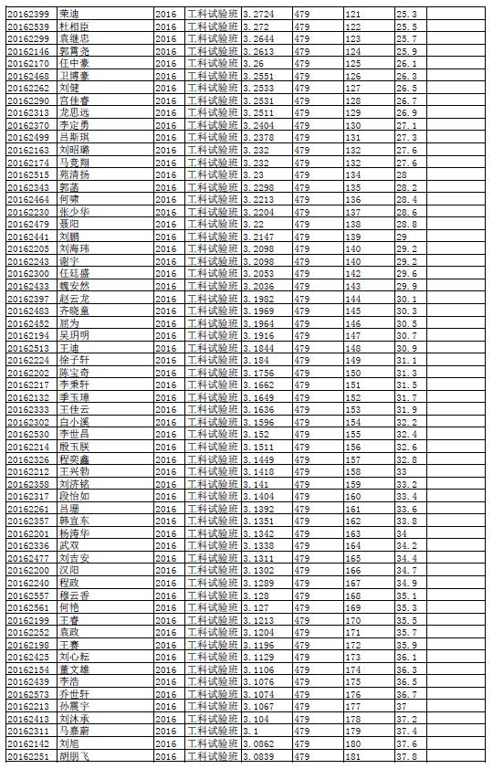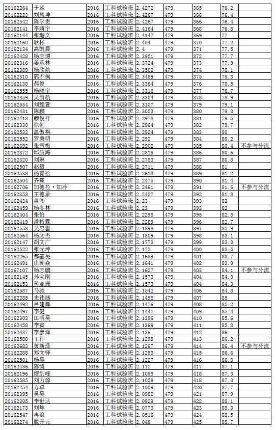 PP电子游戏网站2016级在籍学生专业排名及绩点