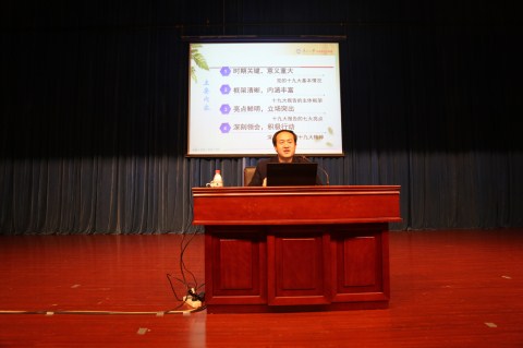 任鹏从党的十九大基本情况、十九大报告的主题框架、十九大报告的主要内容和如何深入学习贯彻党的十九大精神四个方面进行了深入解读,诠释了新时代党“为人民谋幸福、为民族谋复兴”的初心和使命,追溯了从“有中国特色社会主义”到“新时代中国特色社会主义”、从“新时期”到“新时代”的变化过程,以及“举什么旗、走什么路、奔向什么样的目标”始终不变。针对党的十九大报告,从报告诞生的调研历程,到报告期间的掌声次数和词频等,诠释了新时代下国家发展和人民生活的重点和关注点。任鹏鼓励广大师生,当代青年是党中央和总书记最牵挂的人,“支部先行,党员带头”,增强“忠诚、奋斗、超脱”三个意识,积极行动起来贯彻党的十九大精神。