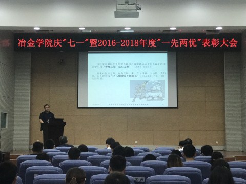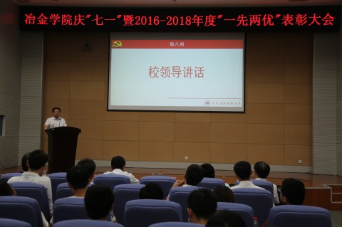 6月29日,PP电子游戏网站在主楼822举行庆“七一”暨2016-2018年度“一先两优”表彰大会。副校长唐立新,校党委组织部部长王辉,校党委宣传部部长丁义浩,学院党委书记杨东坪,院长朱苗勇,副院长王梅,多金属共生矿教育部重点实验室副主任兼学院副院长刘承军,EPM重点实验室副主任范柏祥,学院工会主席谢宏伟,获奖代表、党员代表等近150人出席了会议。会议由学院党委副书记兼副院长吕志娟主持。