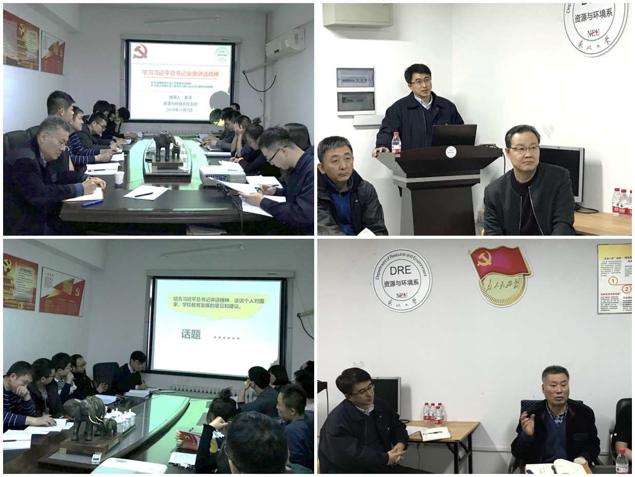 为贯彻落实学习全国教育大会精神的要求,扎实推进“两学一做”学习教育常态化制度化,11月7日资源与环境系党支部在钢铁楼309B会议室召开了“关于习近平总书记在全国教育大会、在东北考察和深入推进东北振兴座谈会上重要讲话精神”的专题学习研讨活动。会议由支部书记姜涛同志主持,PP电子游戏网站党委书记杨东坪同志作为支部对接联系的党委委员,应邀参加会议并指导工作。