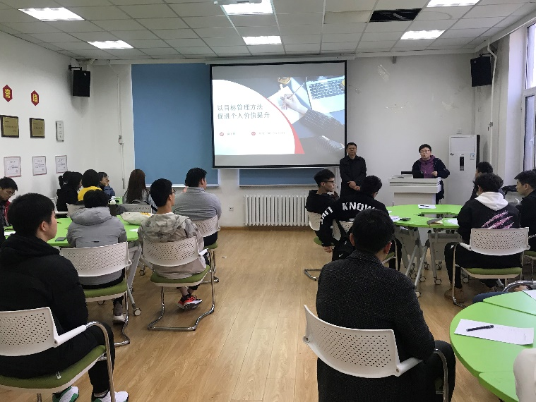 尚子扬以“以目标管理方法促进个人价值提升”为主题,从“为什么要努力”和“如何去努力”两方面展开介绍。首先,尚子扬强调,努力是为了对得起同学自己,好的成绩是努力的馈赠,大学生只有努力学习、努力提升综合素质,才能在将来拥有选择的自由和权利。另外,尚子扬希望大家要做到自律和他律,自律方面,给2021年的自己写一封信,总结去年的收获与不足,给自己列出新一年的计划;他律方面,通过班级目标制定、目标审核、年底表彰等方式,促进班集体进步和学生自我价值不断提升。会后,尚子扬逐一回答了同学们提出的关于目标管理方法方面的问题,表示随时欢迎大家与他交流谈心,并对大家未来发展送上殷切祝福。