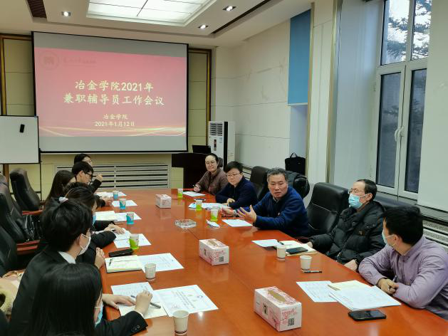 1月12日,PP电子游戏网站在冶金馆301会议室召开2021年兼职辅导员第一次工作会议。PP电子游戏网站党委书记杨东坪、党委副书记兼副院长吕志娟、党委组织员曹殿民、学院全体学生工作干部及9名兼职辅导员参加会议。会议由学生办副主任刘茵主持。