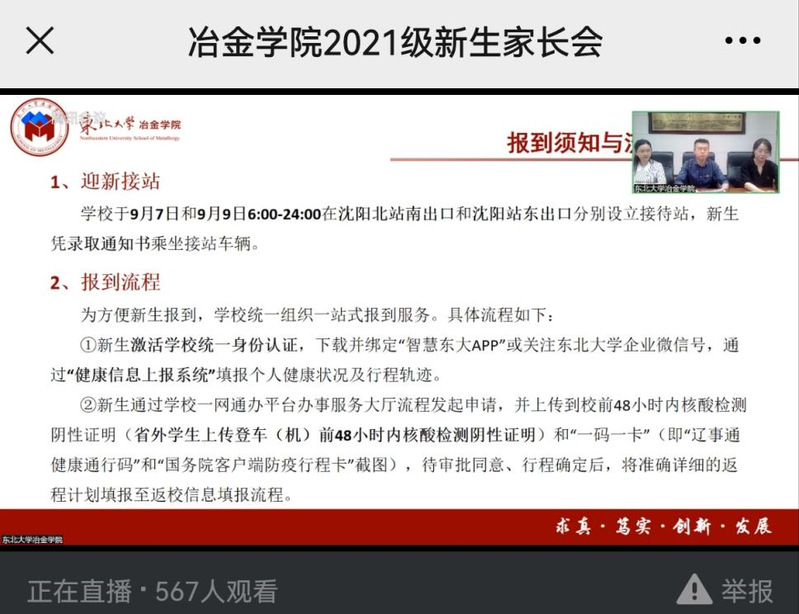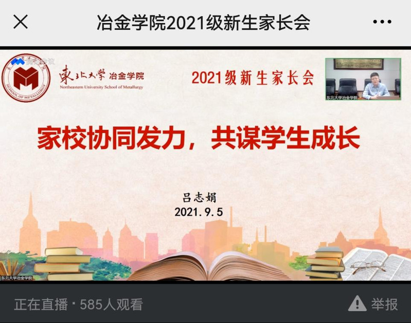 为进一步贯彻立德树人根本任务,架起家校协同桥梁,确保2021级新生在疫情防控期间安全、有序、顺利完成入学报到,PP电子游戏网站于9月5日召开线上新生家长会。PP电子游戏网站院长刘承军,副院长杜涛,党委副书记、副院长吕志娟,2021级本科生新生辅导员参加本次家长会,学生工作办公室主任赵冬颖主持会议。500余名新生家长通过网络直播实时参与到本次家长会中。