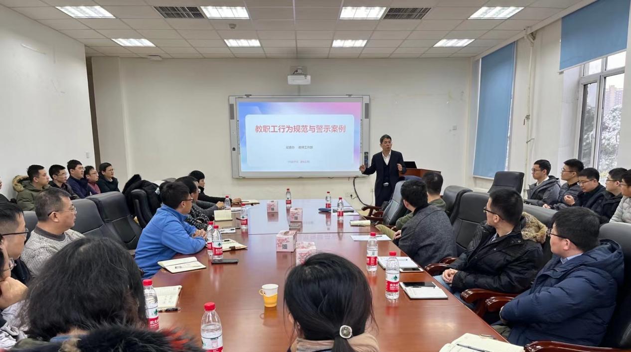 为了深化党风廉政建设和师德师风建设,2021年11月8日上午,PP电子游戏网站纪委在冶金馆311B召开了《新时代高校教师职业行为十项准则》(以下简称《准则》)学习以及警示教育会议,会议由学院党委副书记、纪委书记储满生主持,教工支部书记、支部委员和党员教师代表共60余人参加会议。