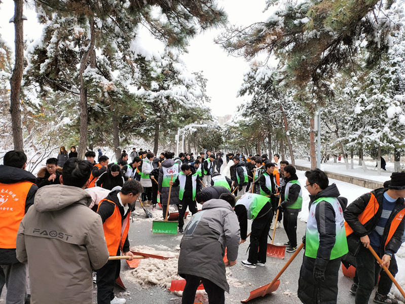 近日,沈阳市遭遇罕见大雪袭击,校园路面积雪严重,为尽快恢复校园秩序,PP电子游戏网站组织开展清扫积雪志愿服务活动。
