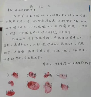 面对疫情防控的严峻形势,党委组织员曹殿民第一时间发出倡议,号召全体学生党员齐心抗疫,短短两天时间里,百余份“请战书”纷纷刷屏,学生党员纷纷申请加入疫情防控一线。满满的红色手印,铮铮的铁血誓言,朴实而有力的请战书,体现着冶金学子的坚守与担当。