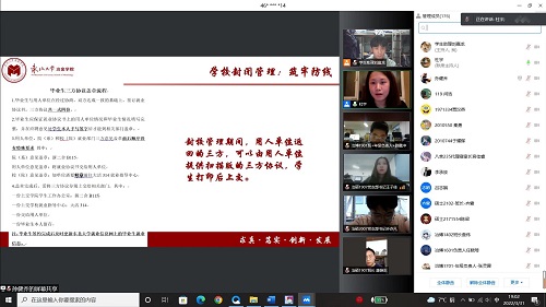 学院64位本科生班导师第一时间响应学院党委号召,分别面向所负责班级的全体学生和家长召开线上家长会,积极录制“师”情“话”意微视频,在云端送去了温暖与关爱,他们积极参与各班级建设中,充分发挥引领作用。