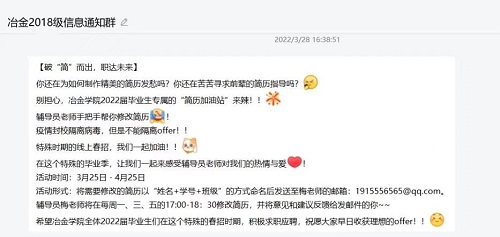 2021级本科生辅导员高山把疫情危机化为教育契机,以科技竞赛与网络思政为抓手,确保学生疫情期间学习生活两不误。截至日前,第五届全国大学生冶金科技竞赛、第十五届节能减排大赛等校内选拔赛均在如火如荼进行中。在近一个月的时间里,学院官微累计发布消息100余条,阅读量4万+,积极传播主旋律,弘扬正能量。此外,他助力学院开通“解忧信箱&树洞”,让学生的心里困惑有发声之处,及时同因疫情暂未返校同学进行交流,为学生排忧解难。