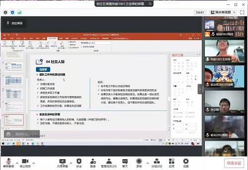 冶金1901班班导师谢宏伟参与录制学校“师说思语”云端大讲堂,隔空助力学子为大家加油打气;能动2002班班导师孙文强邀请保研学生作讲座,帮助低年级学生尽早做好生涯规划;工试I2114班班导师都兴红积极参与支部团日,关心学生在封校期间的生活、学习和心理状态;工试I2116班班导师贾鹏多次召开班会,解答学生问题,叮嘱学生加强体育锻炼,保持积极乐观心态。