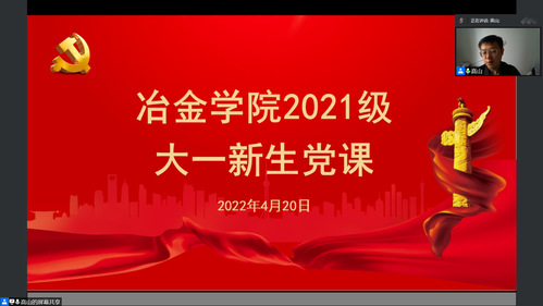 4月20日14:30,PP电子游戏网站2021级大一新生党课通过线上形式顺利召开。学院党委书记张耀伟、学院党委副书记兼副院长吕志娟、学院党委组织员曹殿民、全体学生工作干部,2021级全体兼职辅导员、成长发展指导员,2021级本硕党支部支委、2021级部分硕士研究生以及2021级全体本科新生参加党课。