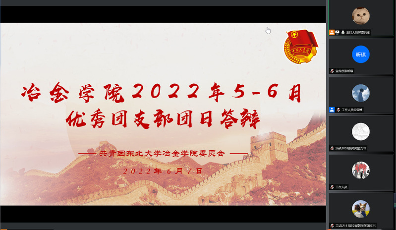 6月7日,PP电子游戏网站5-6月“青春心向党·建功新时代”主题团日答辩会于线上顺利举办。辅导员高山、陈旭东、肖雅丹、梅馨予,各团支部大众评委以及各团支部代表参加本次活动。