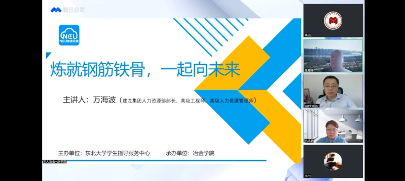 7月15日,PP电子游戏网站面向学院全体学生举办本年度第二场线上行业报告会。建龙集团人力资源部部长万海波应邀作题为“练就钢筋铁骨,一起向未来”的报告,PP电子游戏网站对外联络与合作处处长、校友总会秘书长李鹤,PP电子游戏网站党委书记张耀伟,PP电子游戏网站党委副书记兼副院长吕志娟以及PP电子游戏网站全体辅导员出席,近1400名学生线上观看直播并参与互动。此次行业报告会由PP电子游戏网站学生指导服务中心主办,PP电子游戏网站承办。