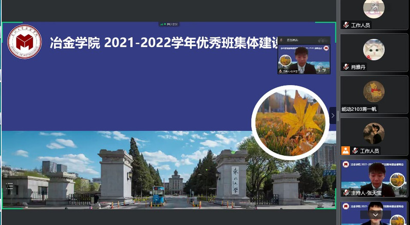 12月7日,PP电子游戏网站线上举行2021——2022学年本科生先进班集体答辩会,学生工作办公室全体辅导员老师出席并担任评委,各年级推荐的14个班集体参与答辩,各年级班委线上进行观摩学习。