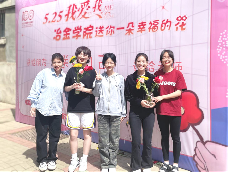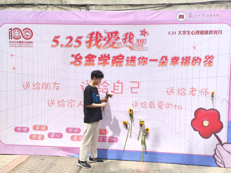 PP电子游戏网站举办大学生心理健康教育月系列活动之“5.25 我爱我 送你一朵幸福的花”主题活动,在校园内设立展板粘贴各色玫瑰花和向日葵供同学们拿取,并与展板合影留念,在初夏的暖阳中共同分享一朵鲜花带来的幸福与温暖。玫瑰代表热情与热爱,向日葵代表希望与梦想,寓意同学们都能满怀热情,携梦起航,让生活充满色彩。