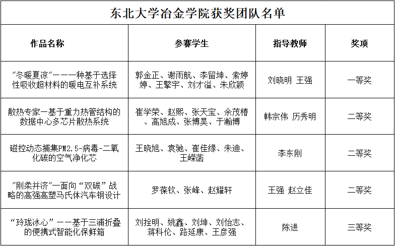 本届大赛以“节能减排、绿色能源”为主题、紧密围绕国家“双碳政策”,吸引来自全国638所高校,共5万余名师生报名参赛,有效作品总数6852件,创大赛历史新高。其中,由材料电磁过程研究教育部重点实验室刘晓明、王强老师指导,新能源科学与工程、能源与动力工程专业郭金正、谢雨航、李留坤、索婷婷、刘才溢、朱欣颖等同学完成的作品《“冬暖夏凉”——一种基于选择性吸收超材料的暖电互补系统》首获一等奖。