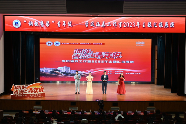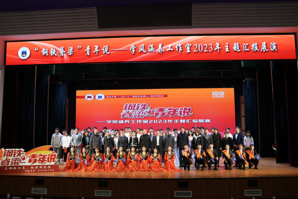 11月10日晚,PP电子游戏网站“钢铁脊梁”青年说——学风涵养工作室2023年主题汇报展演在汉卿会堂蔡冠深报告厅举办。校党委宣传部常务副部长闫研,学生指导服务中心主任刘云飞,团委副书记张忠英,学生工作处副处长韩磊,研究生院教育管理办公室、科学技术研究院运作管理部学术交流办公室相关负责人,PP电子游戏网站院长刘承军,学院党委书记张耀伟,学院领导班子成员、教师代表、学生工作干部以及400余名学生参加活动。