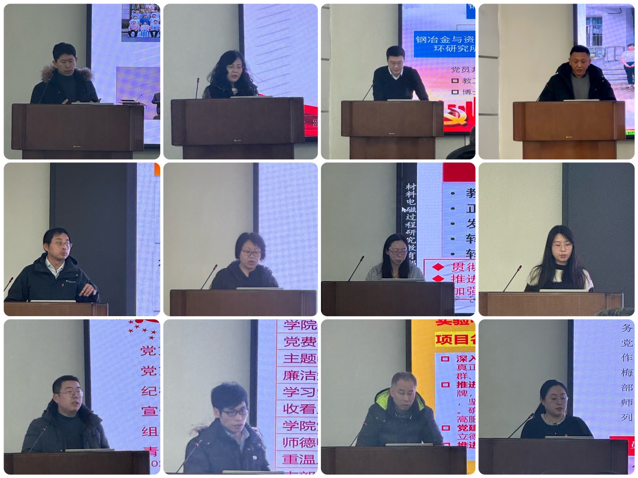会上,2位教工党总支书记和10位教工党支部书记依次从学习贯彻党的二十大精神、扎实开展主题教育、学习宣传贯彻总书记重要回信精神、推进党支部标准化规范化建设、推进党建工作与事业发展深度融合、党员发展和教育管理工作、存在的问题和2024年工作计划等方面进行现场述职。其余本年度不参加现场述职的支部书记提交PPT进行书面述职。