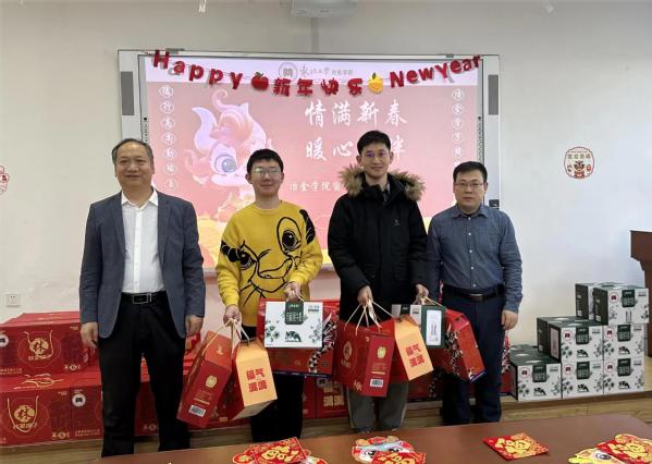 活动现场欢声笑语,师生共同祝福新春,预祝美好吉祥年。会后,张耀伟、豆志河为留校学生发放了慰问礼包,表达祝福。