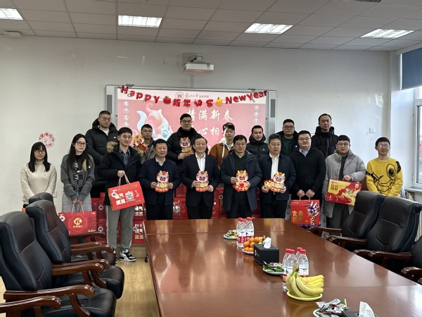 会上,郭海和同学们进行了亲切交流,询问同学们留校过年原因,详细了解大家留校科研情况、实验进展和日常生活,并表示学校将为留校学生的学习、生活做好全方位保障。王强提醒留校学生在校开展科研期间注意安全,尤其在使用高炉等大型设备时要注意实验操作规范。王辉了解了学生们的寝室情况,嘱咐同学们要多与家里联系。张皓叮嘱同学们保重身体,重视体育锻炼,愉快充实地过好假期。随后郭海为留校学生发放慰问品送上真挚的祝福并合影留念。