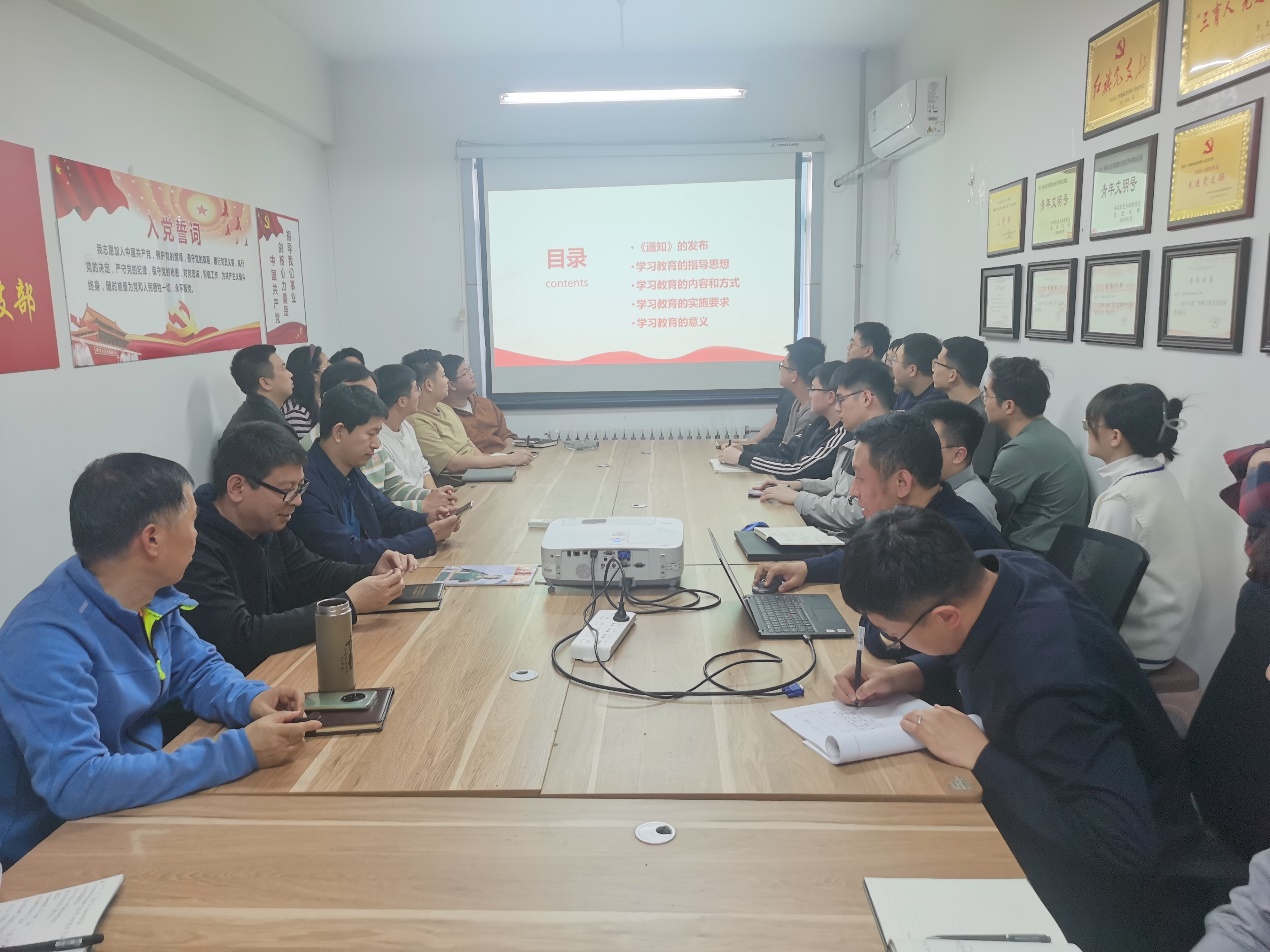 首先,耿鑫领学了《关于在全党开展党纪学习教育的通知》和《中国共产党纪律处分条例》,强调了《通知》对党纪学习教育的重要指导意义,并结合党支部基本情况,就其中涉及支部建设工作的要求和标准进行重点学习和分析。随后,支部党员就本次党纪学习教育的指导思想、内容方式、实施要求和意义进行了深入研讨。