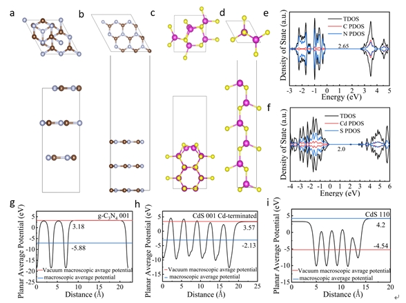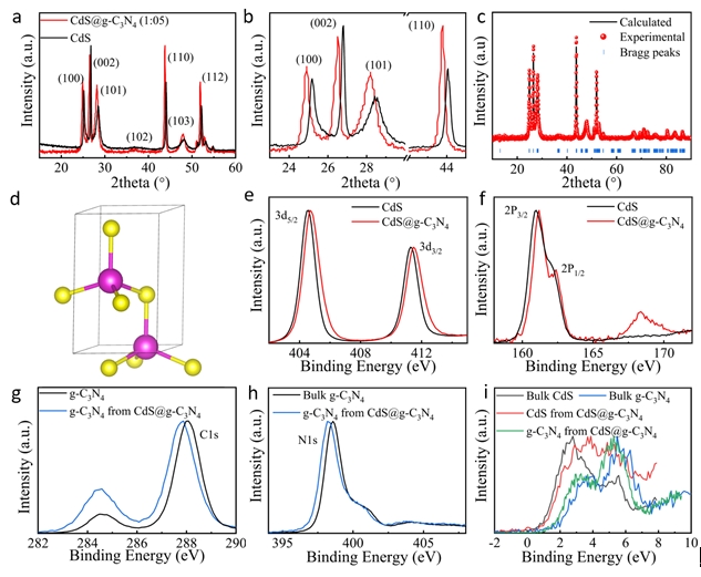 图1 CdS@g-C3N4核壳结构光催化剂晶体结构与能带结构研究