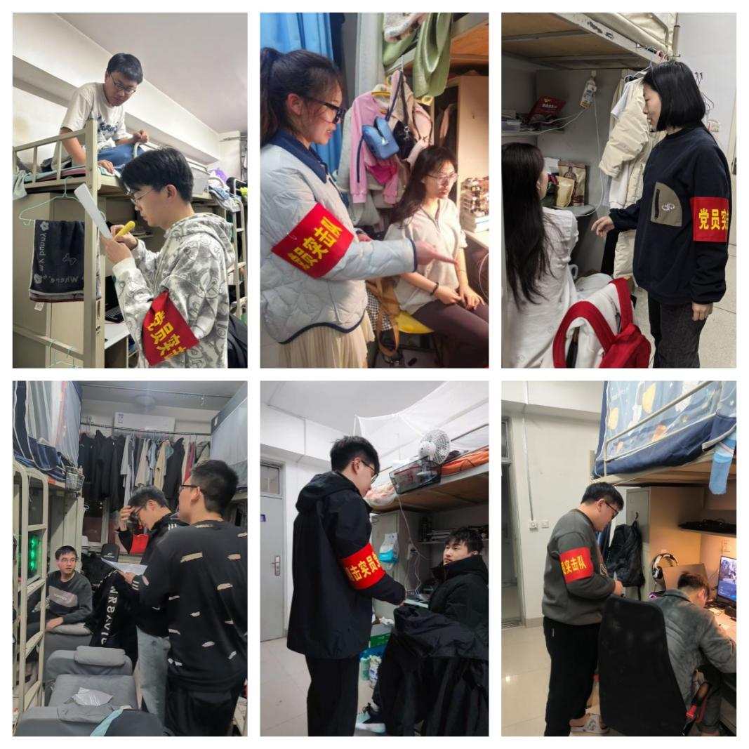 “我是党员,安全守护我先行”是由硕士生党支部支委和党员代表组成突击队,每月到班级的所有寝室走访1次,做好安全提醒,排查安全隐患,提高同学们的安全防范意识,助力校园安全建设,也作为党支部参与学生事务管理、党员联系服务群众的重要形式。