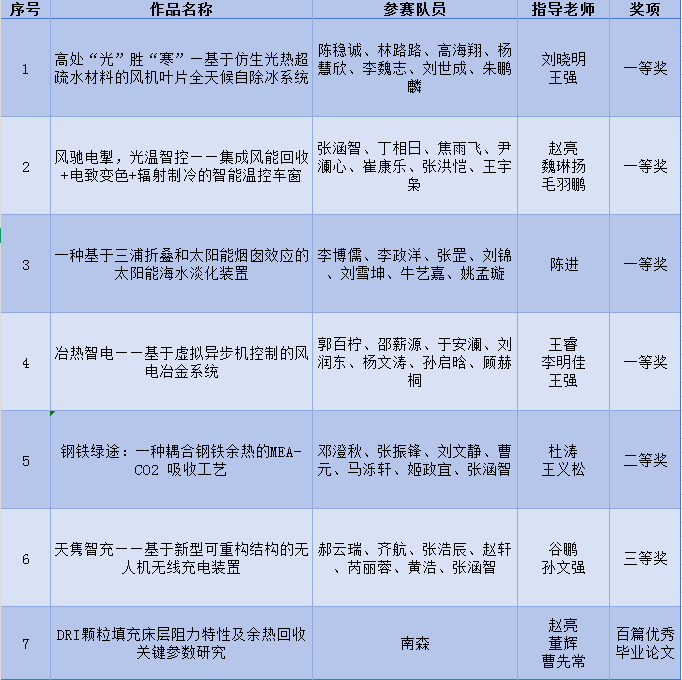 经决赛现场巡展、答辩展示等环节的激烈比拼,由刘晓明、王强指导的作品《高处“光”胜“寒”—基于仿生光热超疏水材料的风机叶片全天候自除冰系统》,赵亮、魏琳扬、毛羽鹏指导作品《风驰电掣,光温智控——集成风能回收+电致变色+辐射制冷的智能温控车窗》,陈进指导作品《一种基于三浦折叠和太阳能烟囱效应的太阳能海水淡化装置》,王睿、李明佳(校外)、王强指导作品《冶热智电——基于虚拟异步机控制的风电冶金系统》,分别获得大赛主赛道全国一等奖。