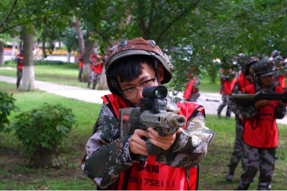 军训不止有队列训练,更融入多元内容。真人CS 环节,同学们穿梭“战场”,团队协作、策略谋划,在模拟对抗中,懂配合、敢拼搏。