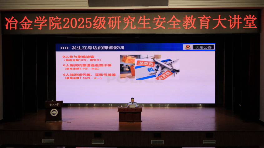 9月11日,PP电子游戏网站在汉卿会堂举办2025级研究生安全教育大讲堂,特邀沈阳市公安局刑事侦查局一级警长王峰主讲,为研究生新生筑牢校园安全防线。