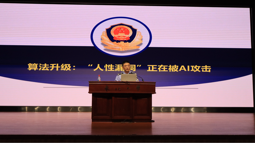 讲座以“算法升级:‘人性漏洞’正在被AI攻击”为核心主题,王峰开篇便结合真实诈骗案例——从学生因刷单被骗10万元,到教职工遭冒充客服诈骗22万元,用风趣幽默的语言还原案件细节,让新生在轻松氛围中直观感受电信诈骗的危害性,快速代入安全教育场景。